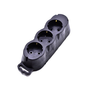 Capul de prelungitor multiplicator din cauciuc are 3 locașuri de conectare cu contacte de împământare și agățătoare. Aceasta priza mobila necesita cablu (recomandat minim 3x1mm2 ) si se poate folosi în medii de lucru mai dure precum santiere, ateliere, garaje. Datorită materialului cauciucat din care este construita va rezista la șocuri mecanice moderate.